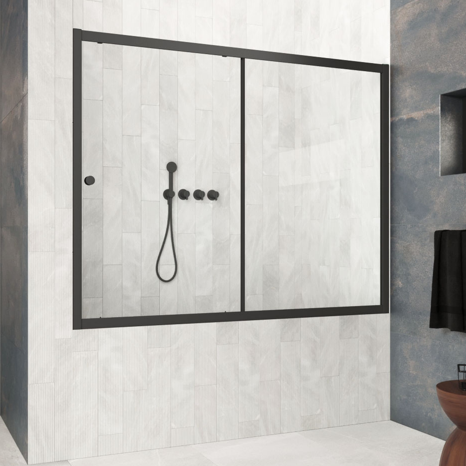 Шторка на ванну Vegas-Glass ZV Protec 160х140 см черный матовый/стекло разное