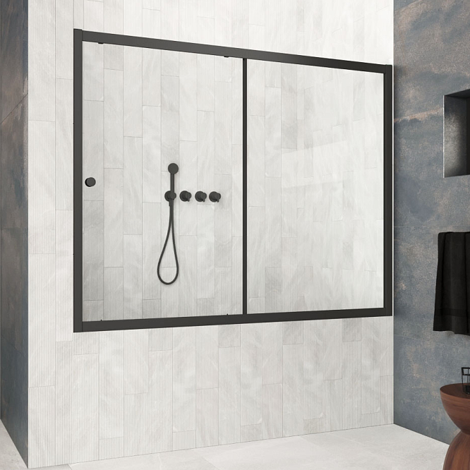 Шторка на ванну Vegas-Glass ZV Protec 190х140 см черный матовый/стекло разное