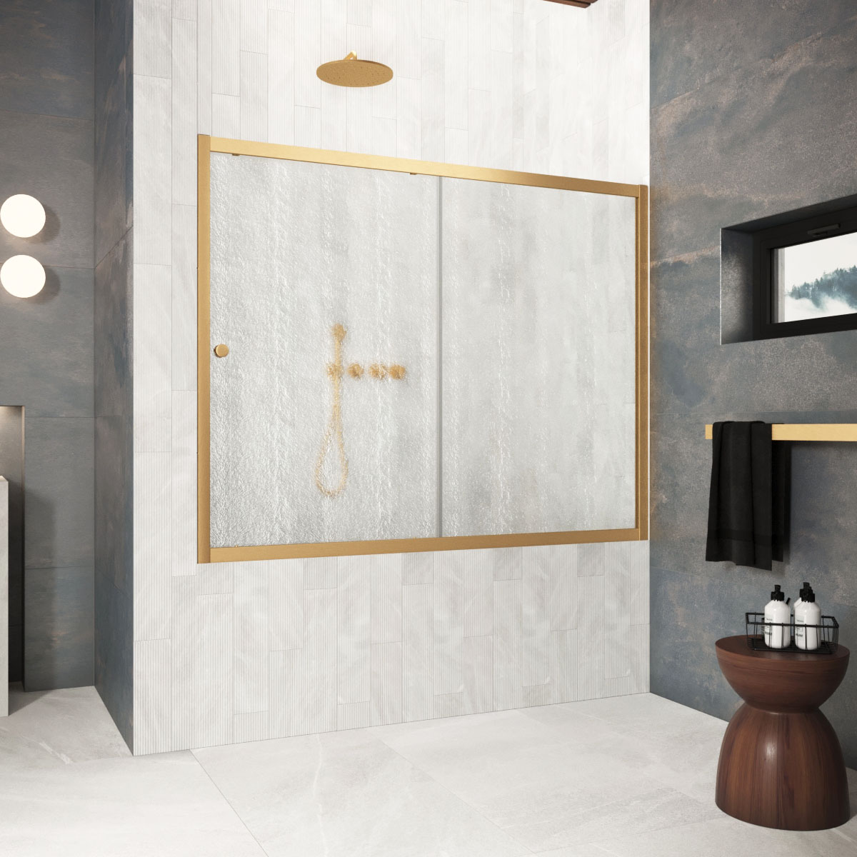 Шторка на ванну Vegas-Glass ZV Protec 190х140 см золото матовое/стекло разное