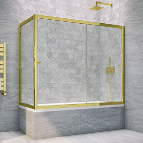 Шторка на ванну Vegas-Glass ZV+ZVF NOVO 150х80х140 см золото матовое/стекло разное