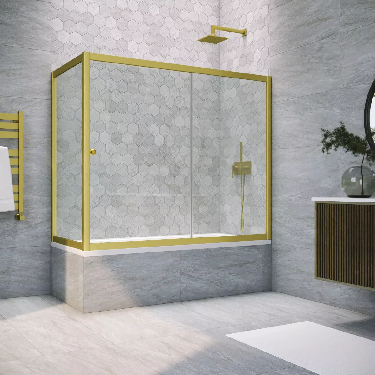 Шторка на ванну Vegas-Glass ZV+ZVF NOVO 160х80х140 см золото матовое/стекло разное