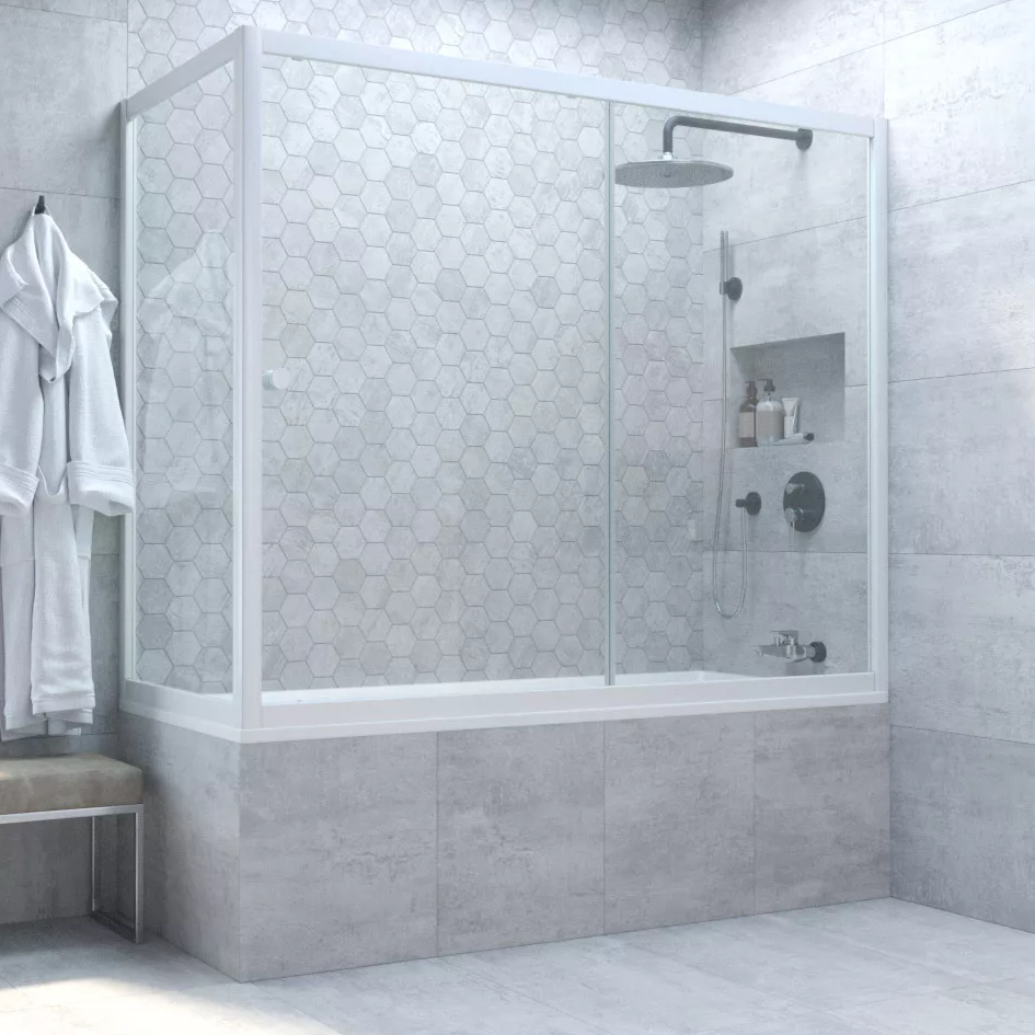 Шторка на ванну Vegas-Glass ZV+ZVF NOVO 160х90х140 см белый/стекло разное