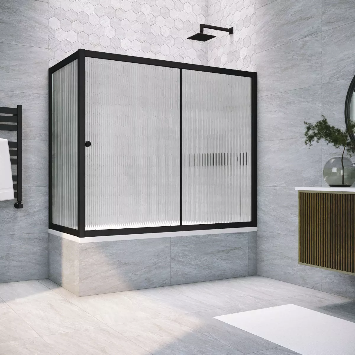 Шторка на ванну Vegas-Glass ZV+ZVF NOVO 160х90х140 см черный матовый/стекло разное