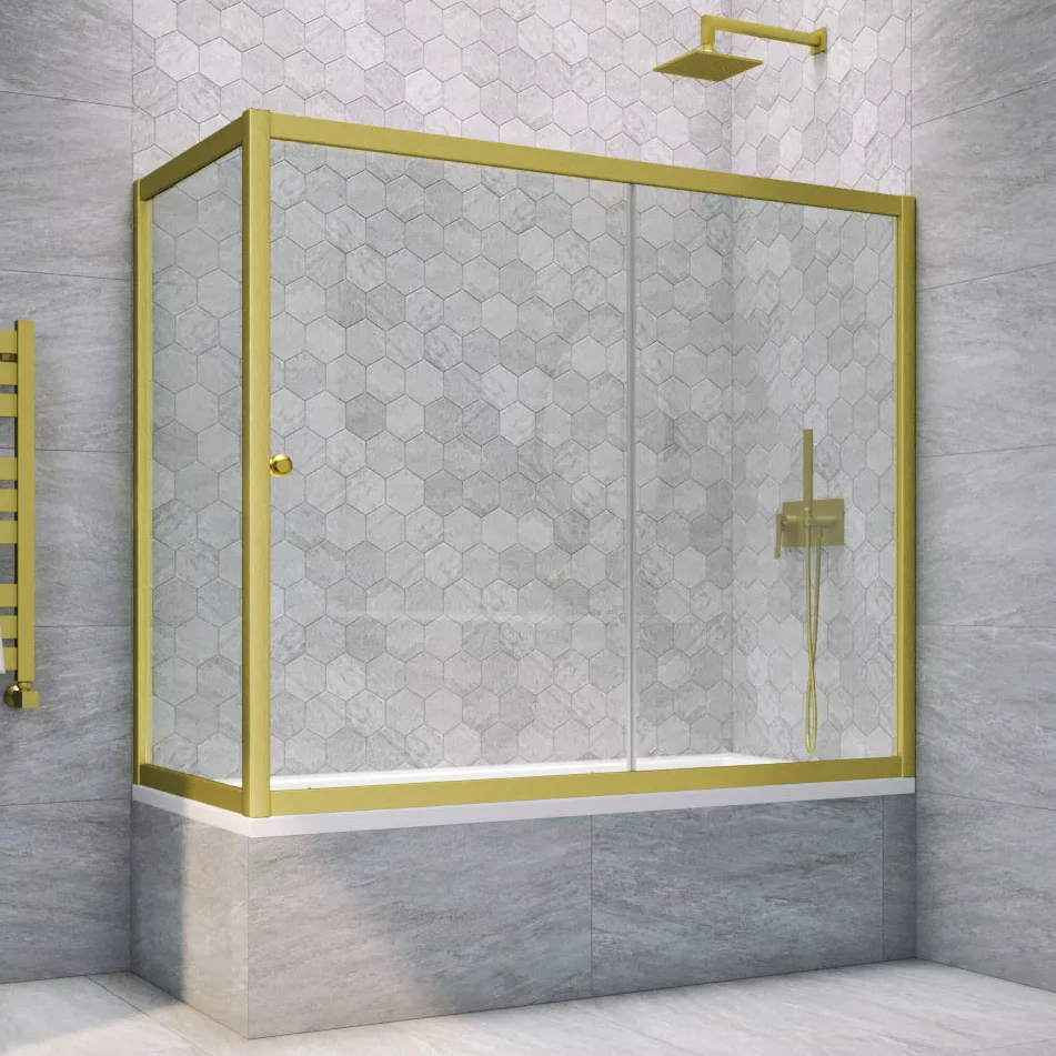 Шторка на ванну Vegas-Glass ZV+ZVF NOVO 170х90х140 см золото матовое/стекло разное