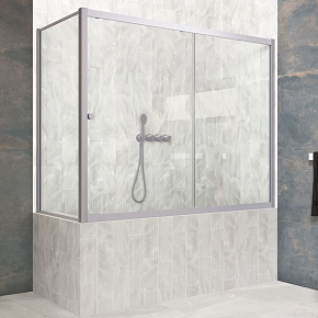 Шторка на ванну Vegas-Glass ZV+ZVF Protec 150х80х140 см никель/стекло разное