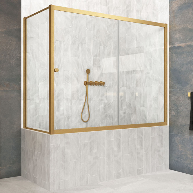 Шторка на ванну Vegas-Glass ZV+ZVF Protec 150х80х140 см золото матовое/стекло разное