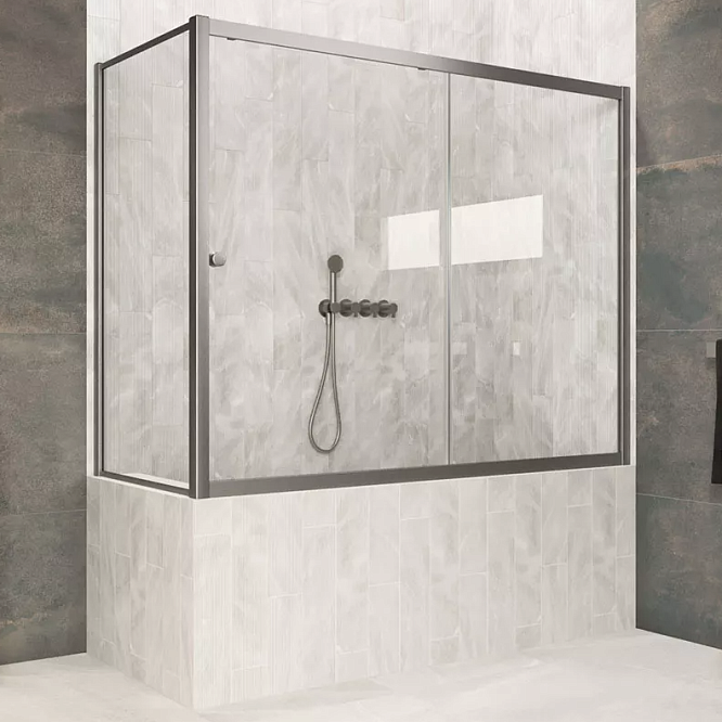 Шторка на ванну Vegas-Glass ZV+ZVF Protec 150х90х140 см оружейная сталь/стекло разное