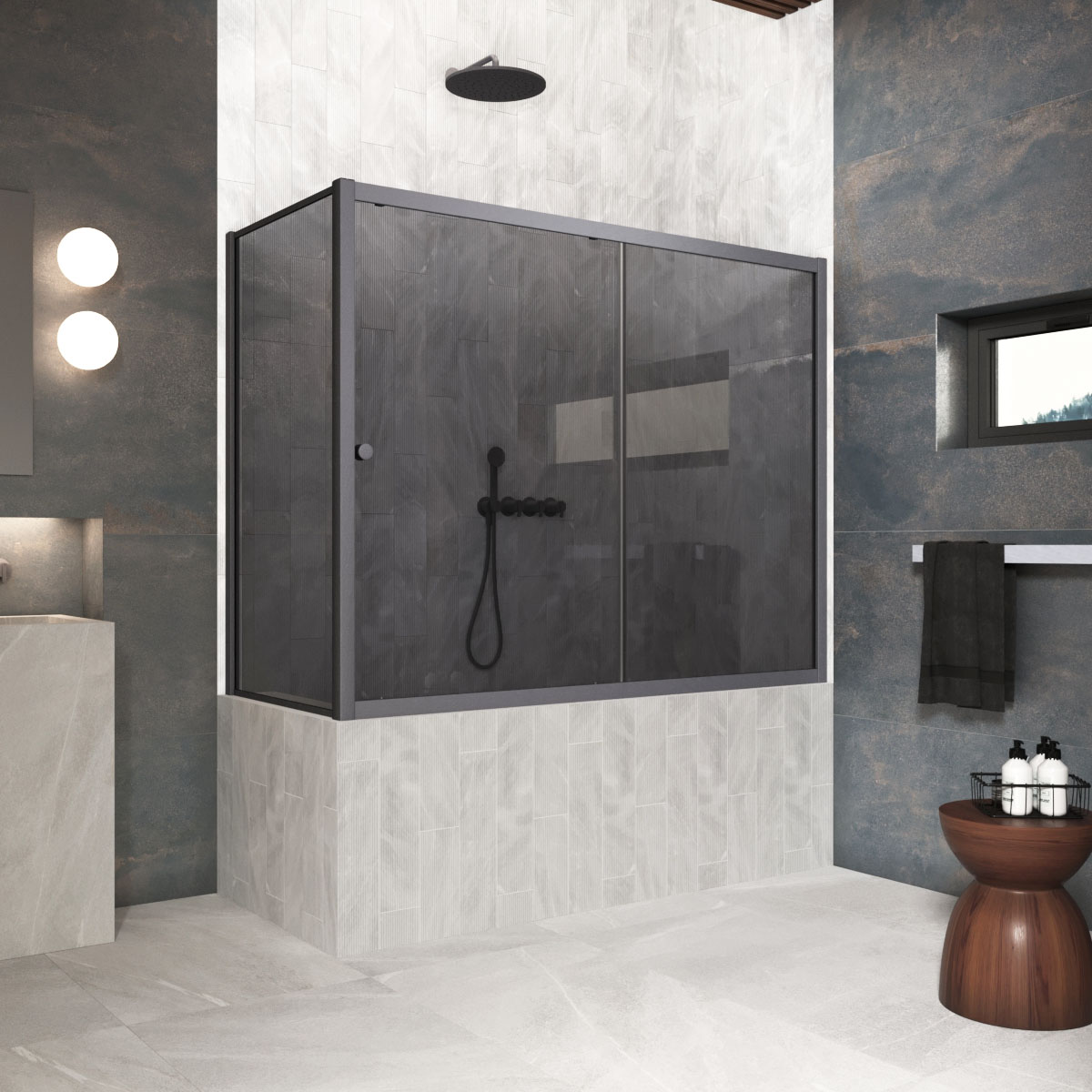 Шторка на ванну Vegas-Glass ZV+ZVF Protec 160х90х140 см GunMetal/стекло разное