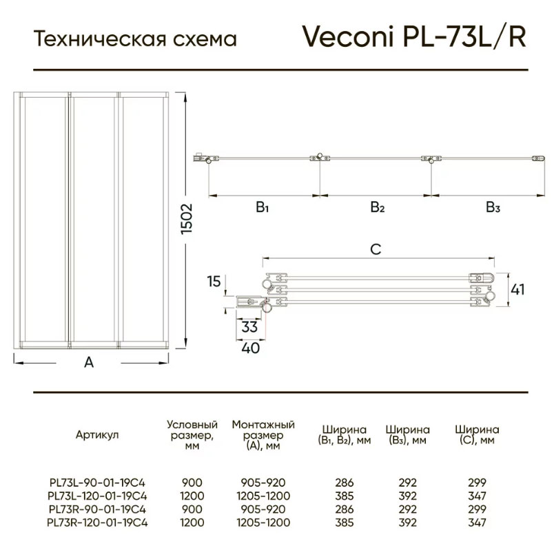 Шторка на ванну складная Veconi Palau PL-73 120х150 см хром/ прозрачное PL73L-120-01-19C4/ PL73R-120-01-19C4