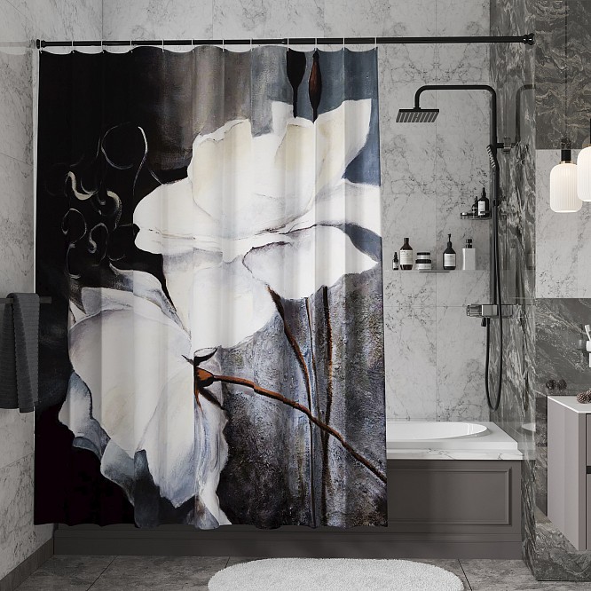 Утяжелитель способствует тому, чтобы шторка не загибалась и не поднималась. Это необходимо для защиты ванной комнаты от брызг воды. Сам утяжелитель органично вшит в низ шторки, благодаря чему практически незаметен.