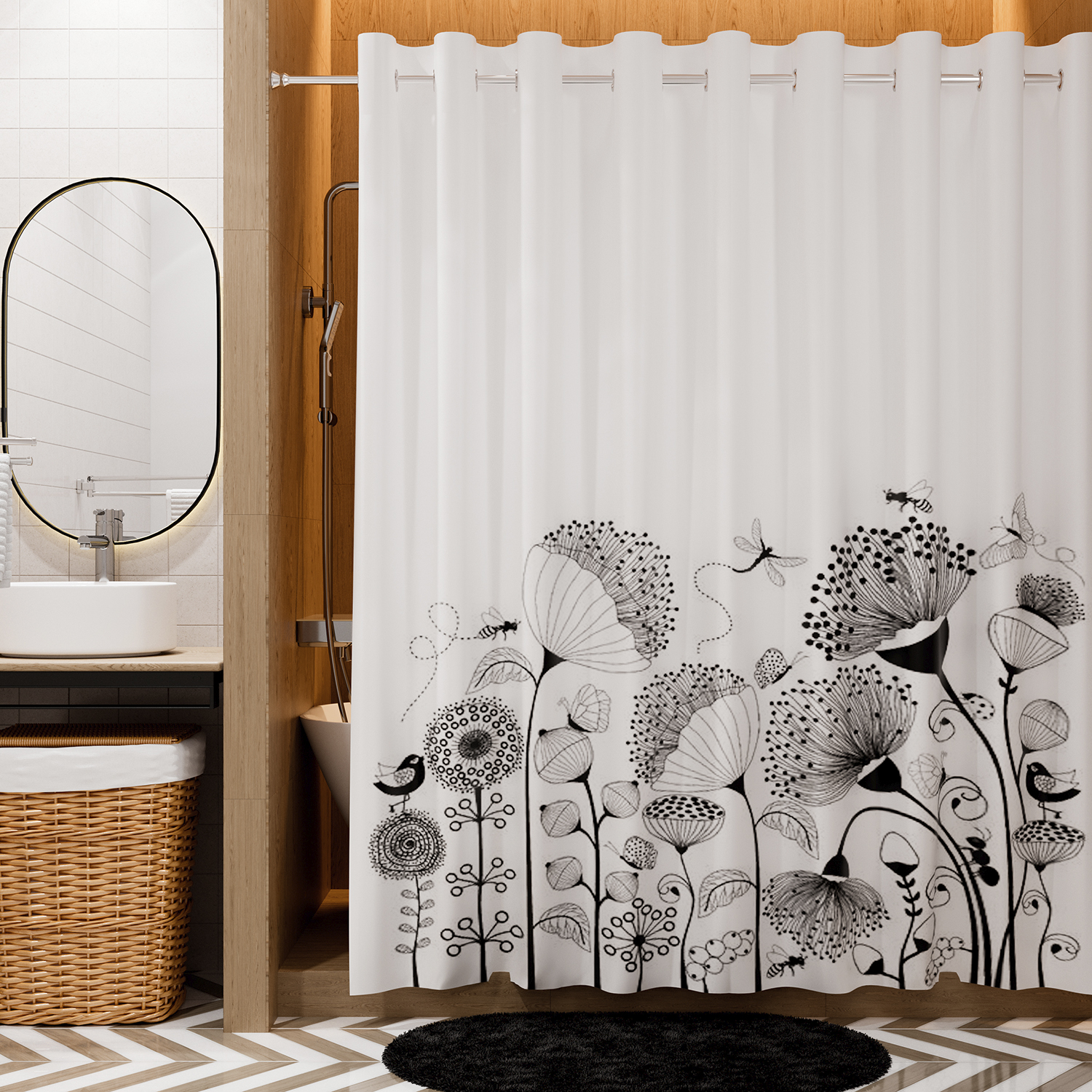 Утяжелитель способствует тому, чтобы шторка не загибалась и не поднималась. Это необходимо для защиты ванной комнаты от брызг воды. Сам утяжелитель органично вшит в низ шторки, благодаря чему практически незаметен.