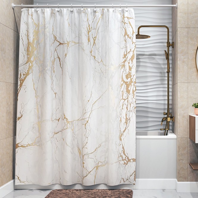 Утяжелитель способствует тому, чтобы шторка не загибалась и не поднималась. Это необходимо для защиты ванной комнаты от брызг воды. Сам утяжелитель органично вшит в низ шторки, благодаря чему практически незаметен.