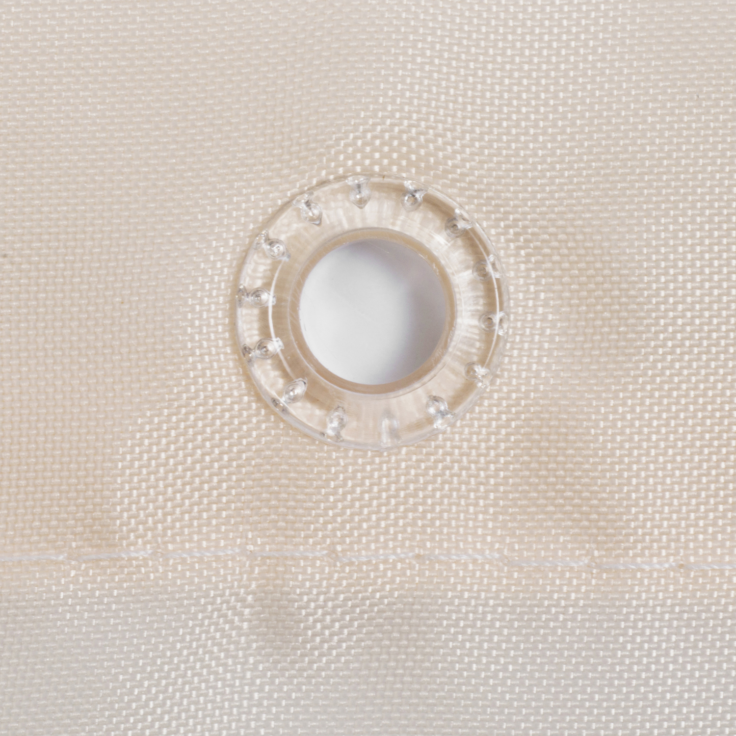 Верх шторки завершают люверсы белого цвета, которые крепко сцеплены с самим изделием. Они препятствуют разрыву ткани в местах максимального натяжения.