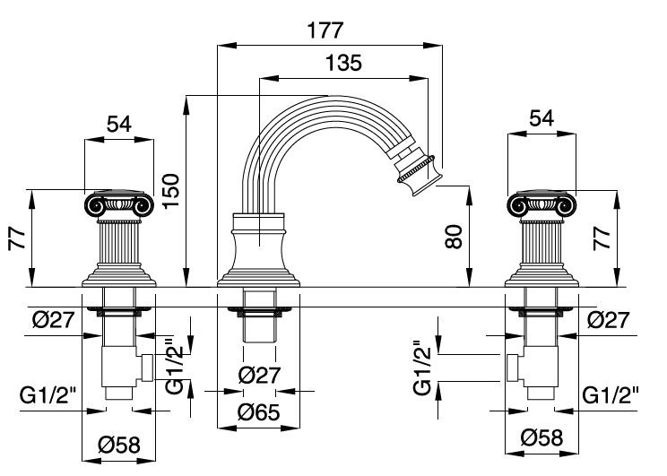 Смеситель для биде на 3 отв Cezares Olimp бронза OLIMP-BBS2-02-Sw