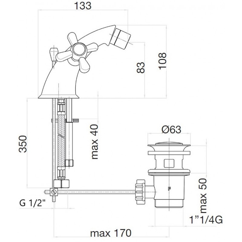 Комплектация: смеситель, подводка, донный клапан