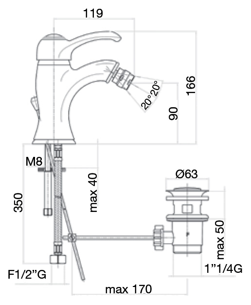 Смеситель для биде с д/к Webert Aurora хром AU840102015