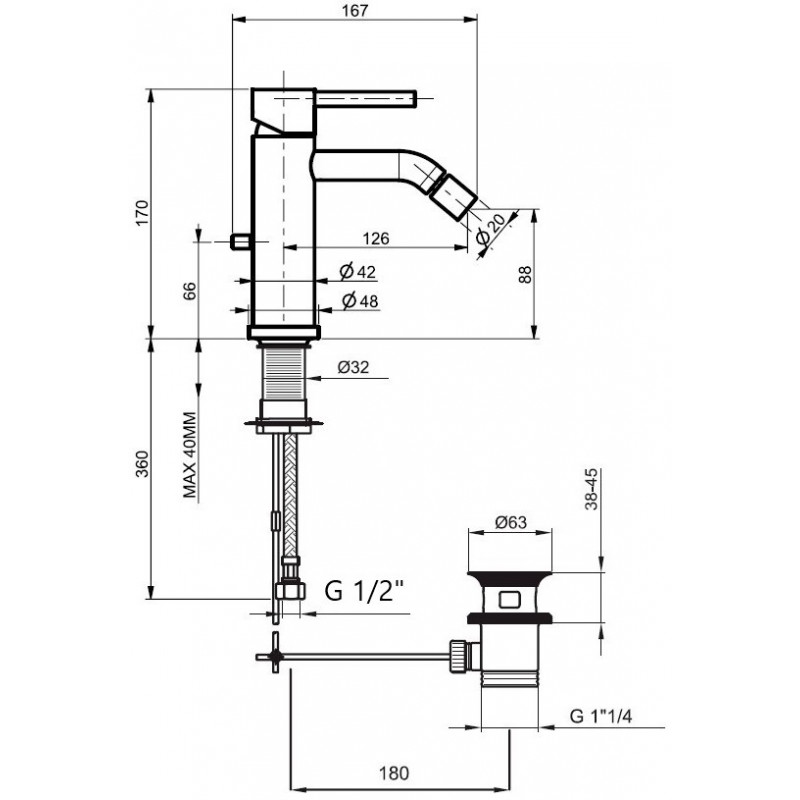 Излив: фиксированный 12,6 см