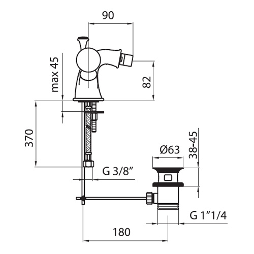 Комплектация: смеситель, подводка, донный клапан
