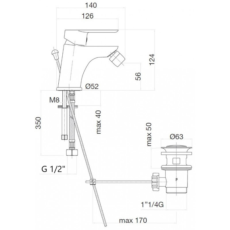 Комплектация: смеситель, подводка, донный клапан