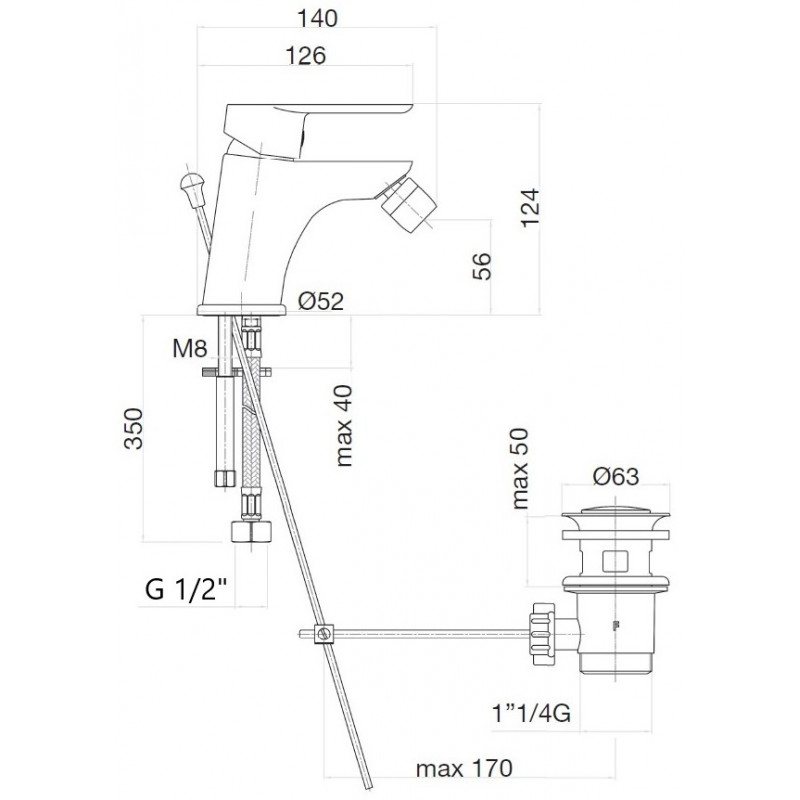 Комплектация: смеситель, подводка, донный клапан