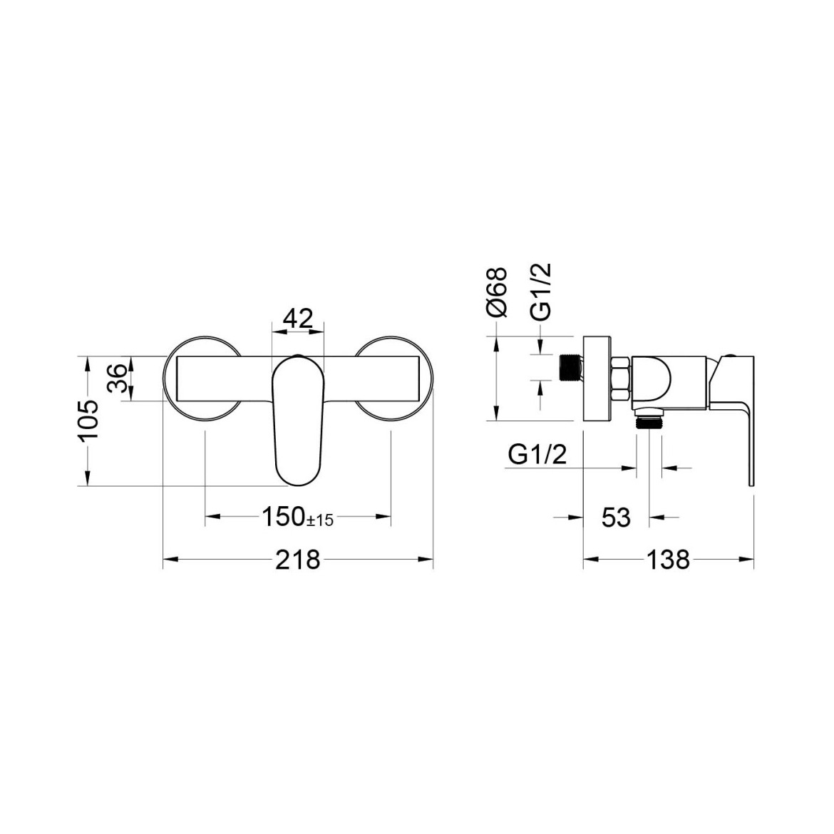 • однорычажная система регулировки силы струи и температуры воды