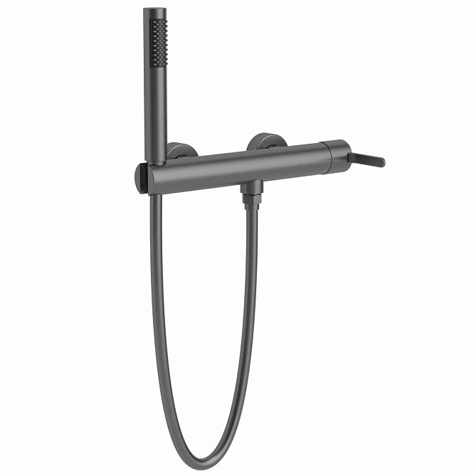 Комплектация: смеситель настенного монтажа, латунный ручной душ, гибкий полимерный шланг, эксцентрики, чаши декоративные