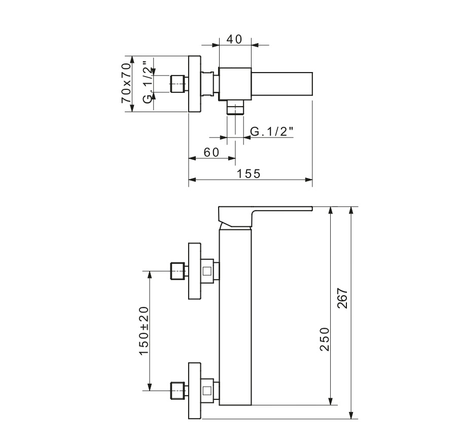 Монтаж: настенный на 2 отв