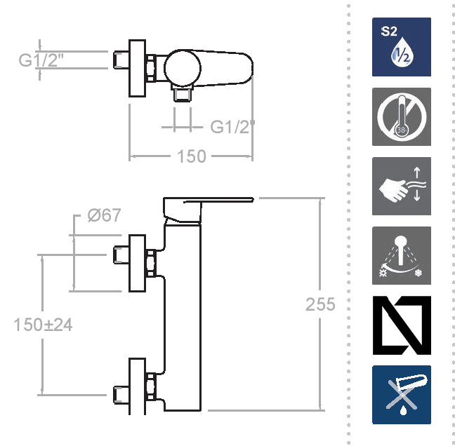 * Водосберегающая система S2 (C2 доступна на некоторых моделях) путем раскрытия ручки смесителя в два этапа.
