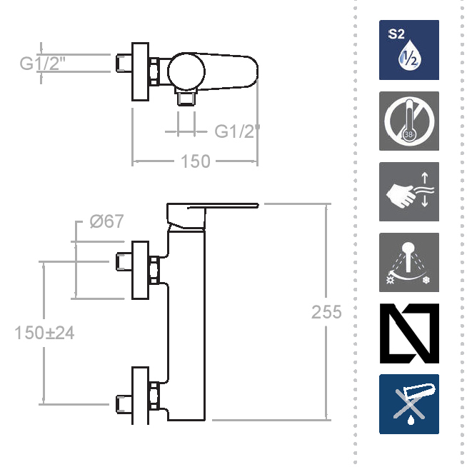* Водосберегающая система S2 (C2 доступна на некоторых моделях) путем раскрытия ручки смесителя в два этапа.