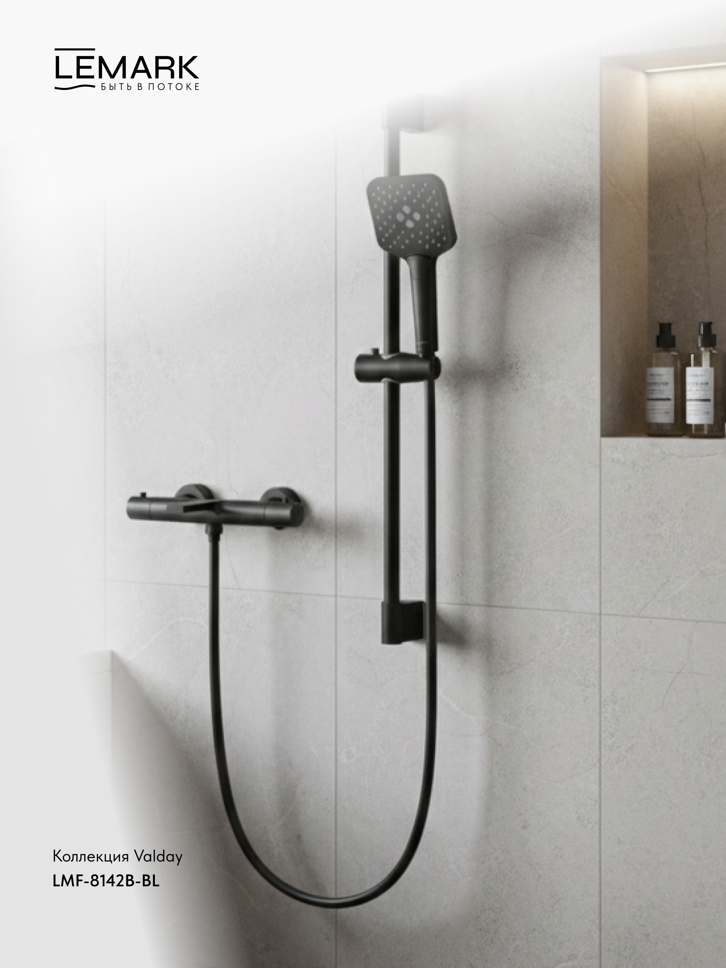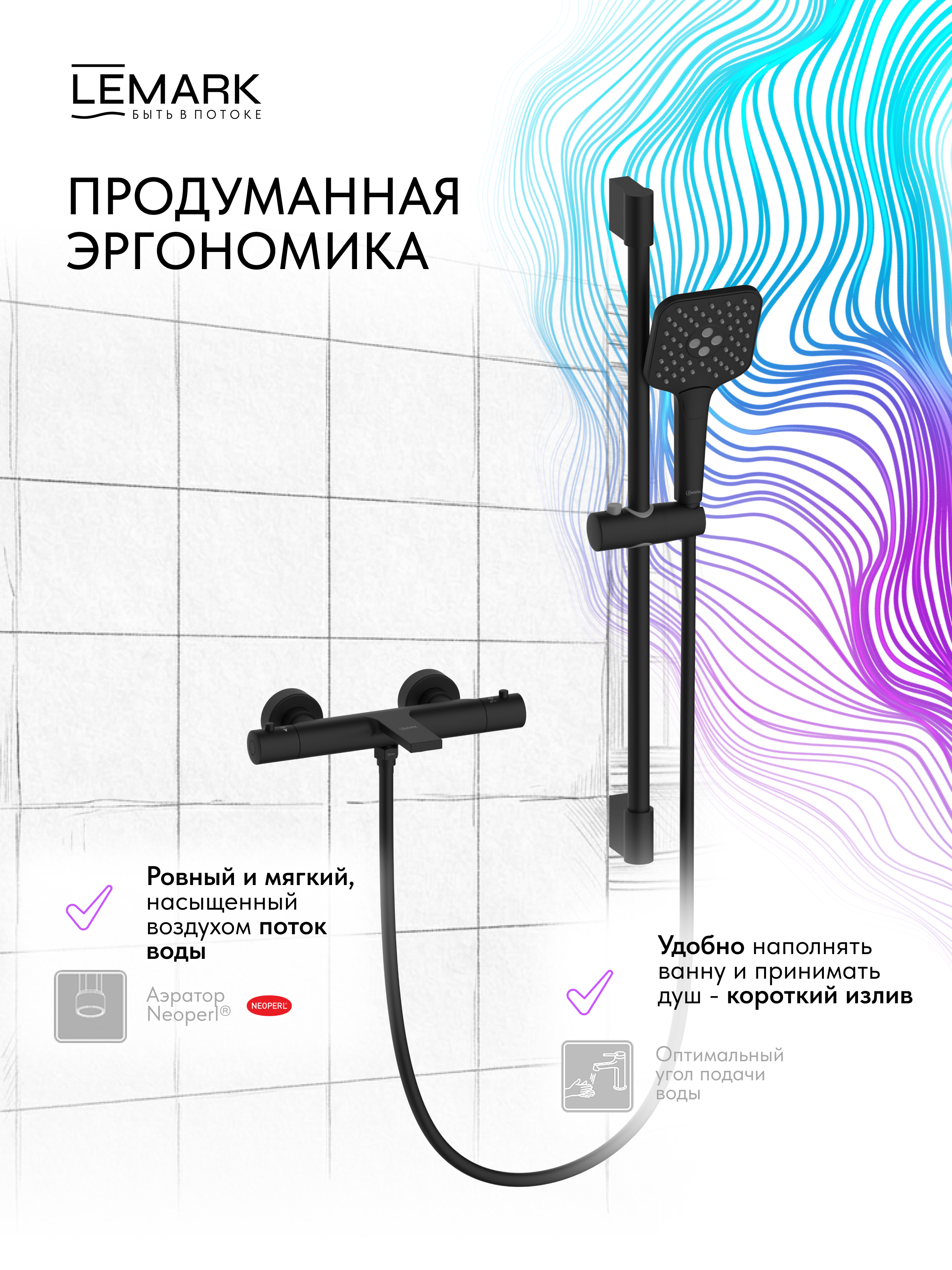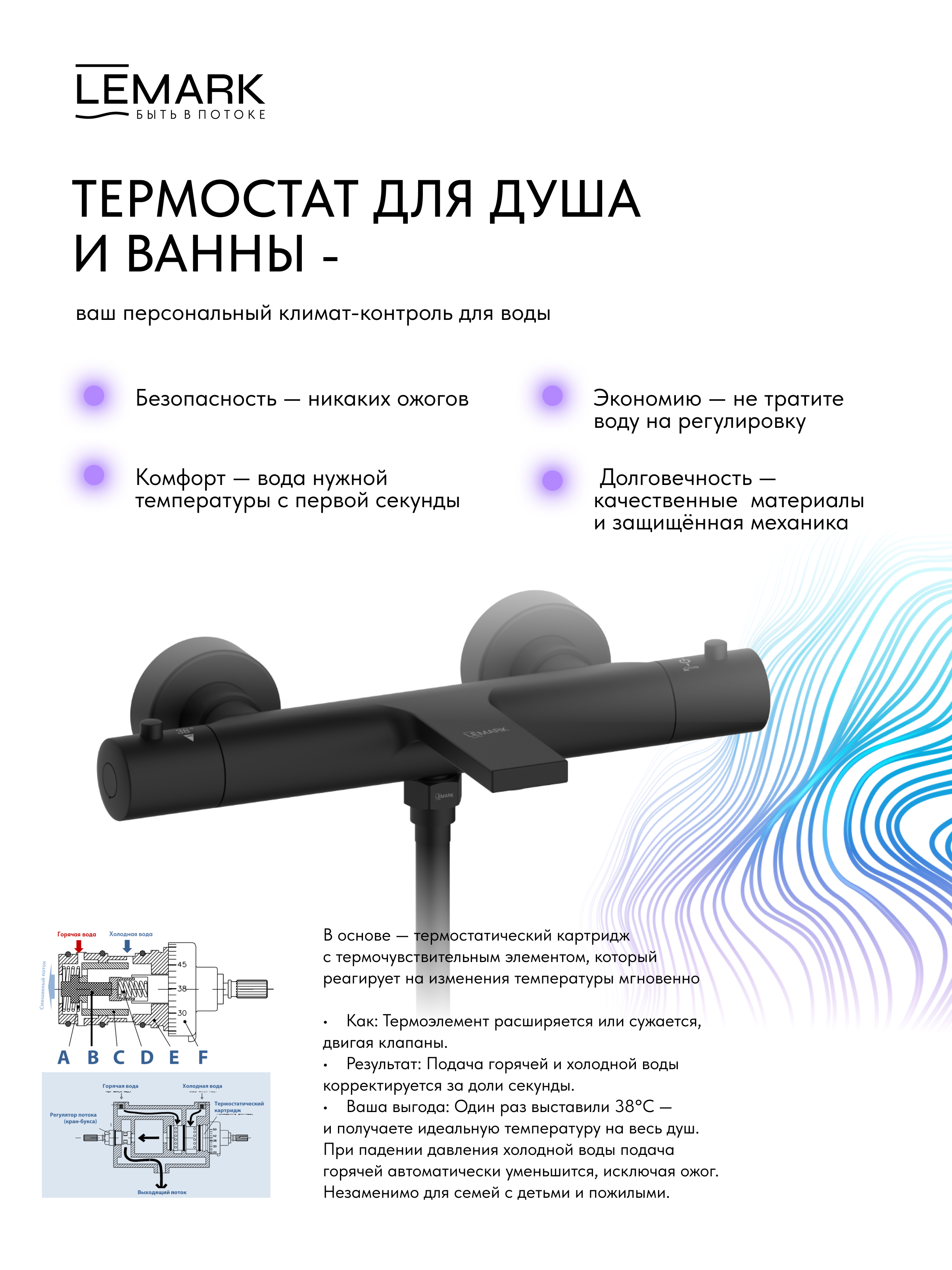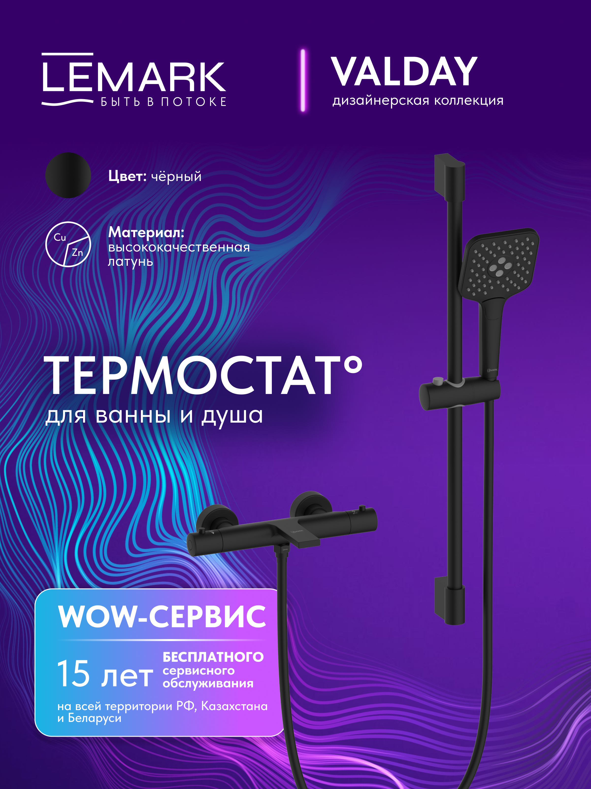 Смеситель для ванны с термостатом Lemark Valday черный матовый LMF-8142B-BL
