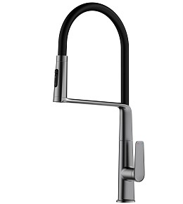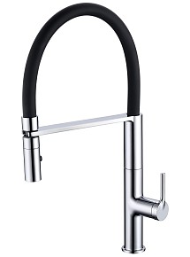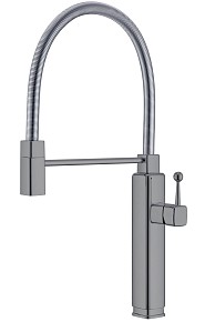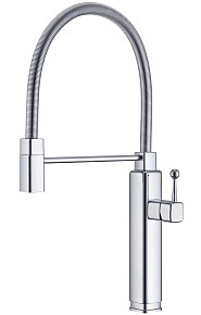 • гибкой лейкой — мягкий шланг позволяет разворачивать ее под любым углом, что повышает удобство использования. Такая модель упрощает набор воды в высокую кастрюлю.