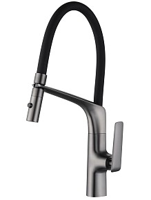 • выдвижной лейкой — гибкий шланг позволяет вытянуть излив на необходимое расстояние, обеспечивая максимальную свободу движений. Подойдет для крупногабаритной мойки и моделей с несколькими чашами;