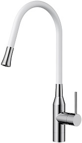 - гибкой лейкой — мягкий шланг позволяет разворачивать ее под любым углом, что повышает удобство использования. Такая модель упрощает набор воды в высокую кастрюлю.