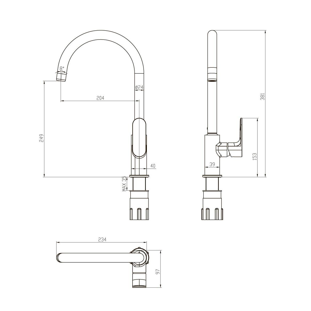 | Высота излива, см | 24,9 |