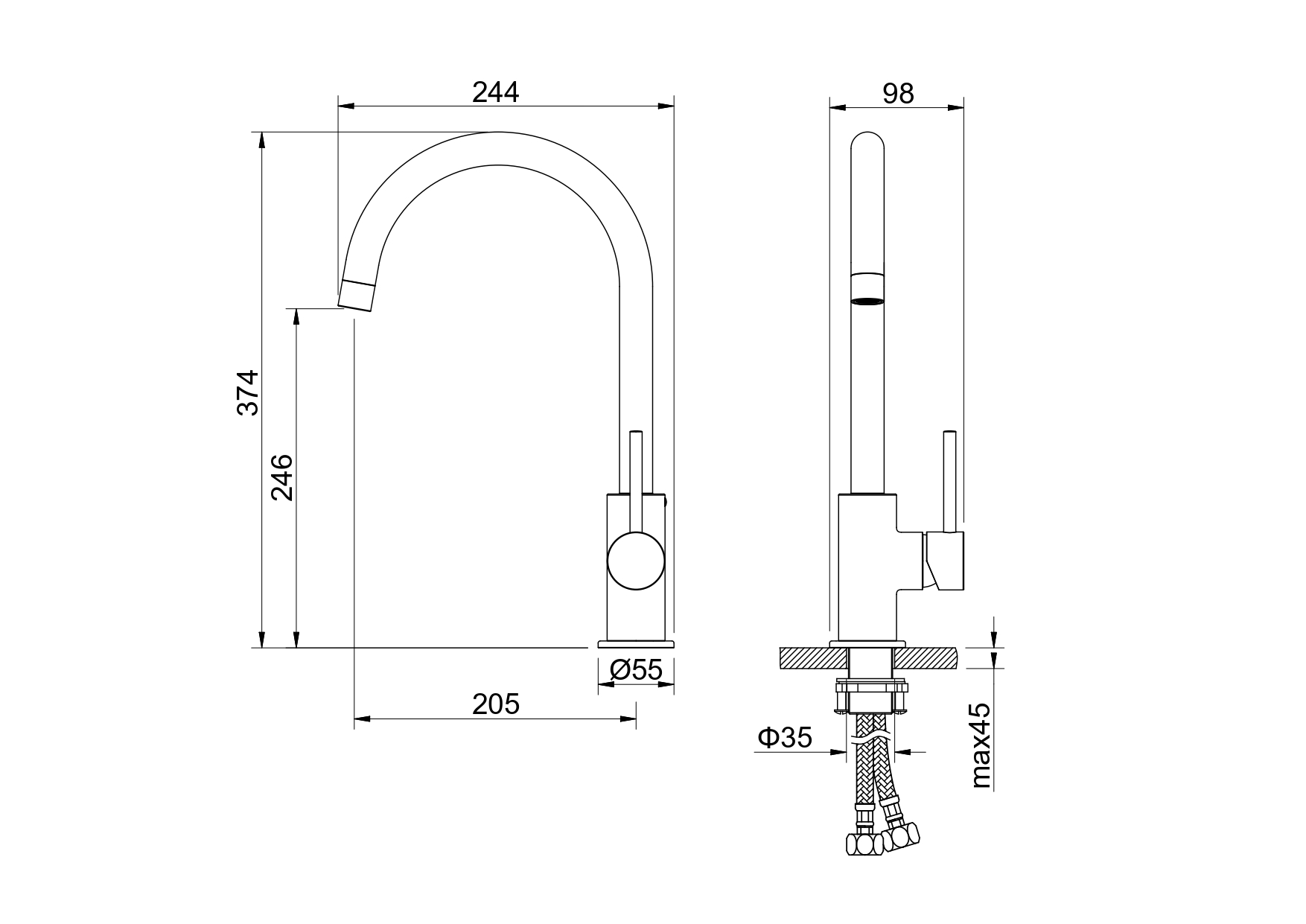 • Оптимальная длина подводки, все необходимое для монтажа в комплекте