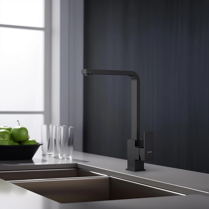- Смеситель для кухни Акватек Либра черный матовый AQ1680MB