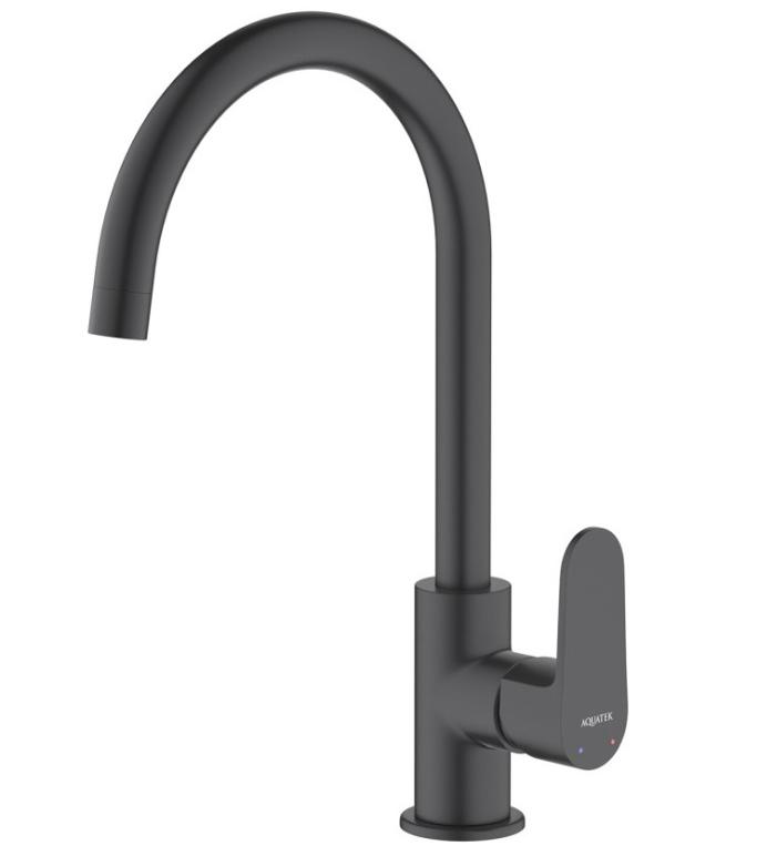 - Смеситель для кухни Акватек Оберон черный матовый AQ1282MB
