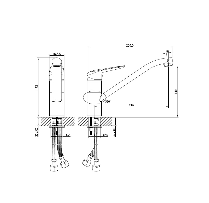 Комплектация: гибкая подводка, крепеж