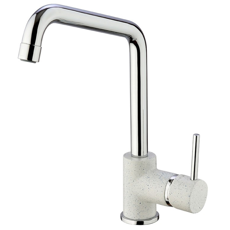 Белый с вкраплениями (гранит), комбинация черного и хромого цветов в корпусе смесителя, и три варианта бежевого цвета: сахара, бежевый с вкраплениями (гранит) и нежный трюфель. Теперь точно получится попасть в цвет столешницы и/или цвет мойки либо создать контрастные сочетания. Все варианты покрытия, включая покрытие под камень, выполнены по специальной технологии, сохраняющей цвет и фактуру надолго и облегчающей уход за смесителем.