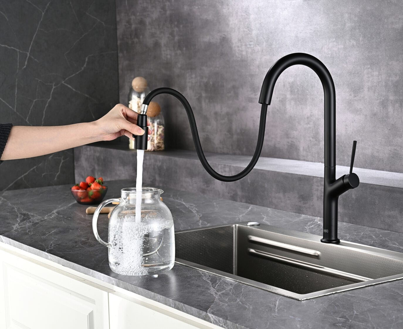 Смеситель для кухни под фильтр с выдвижным изливом AQUAme Cucina черный матовый AQM9905MB