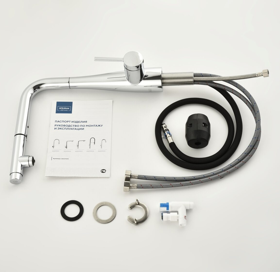 Смеситель для кухни под фильтр с выдвижным изливом AQUAme Cucina хром AQM9902CR