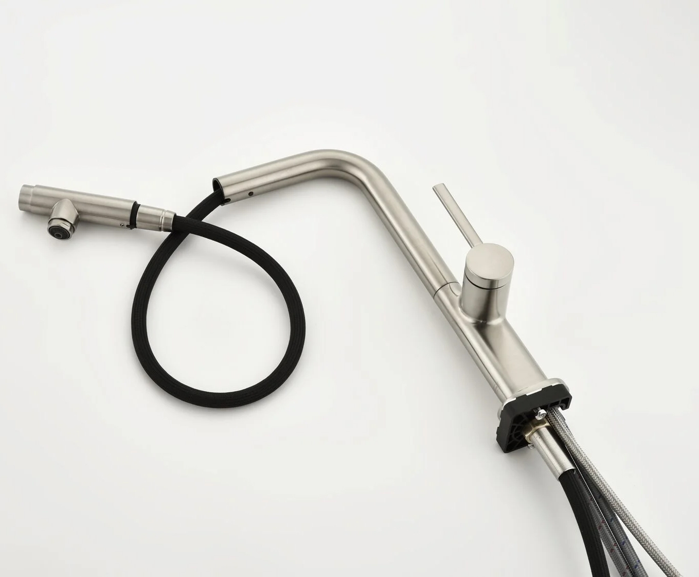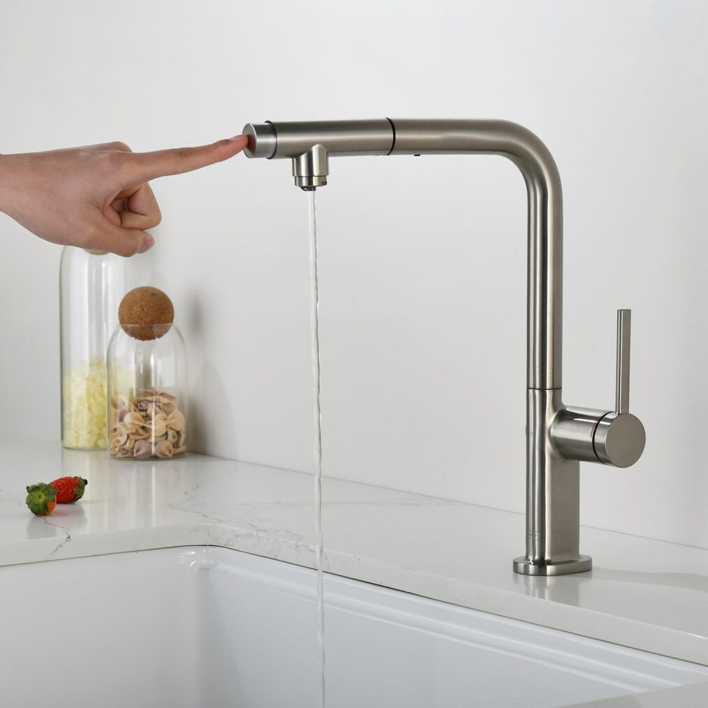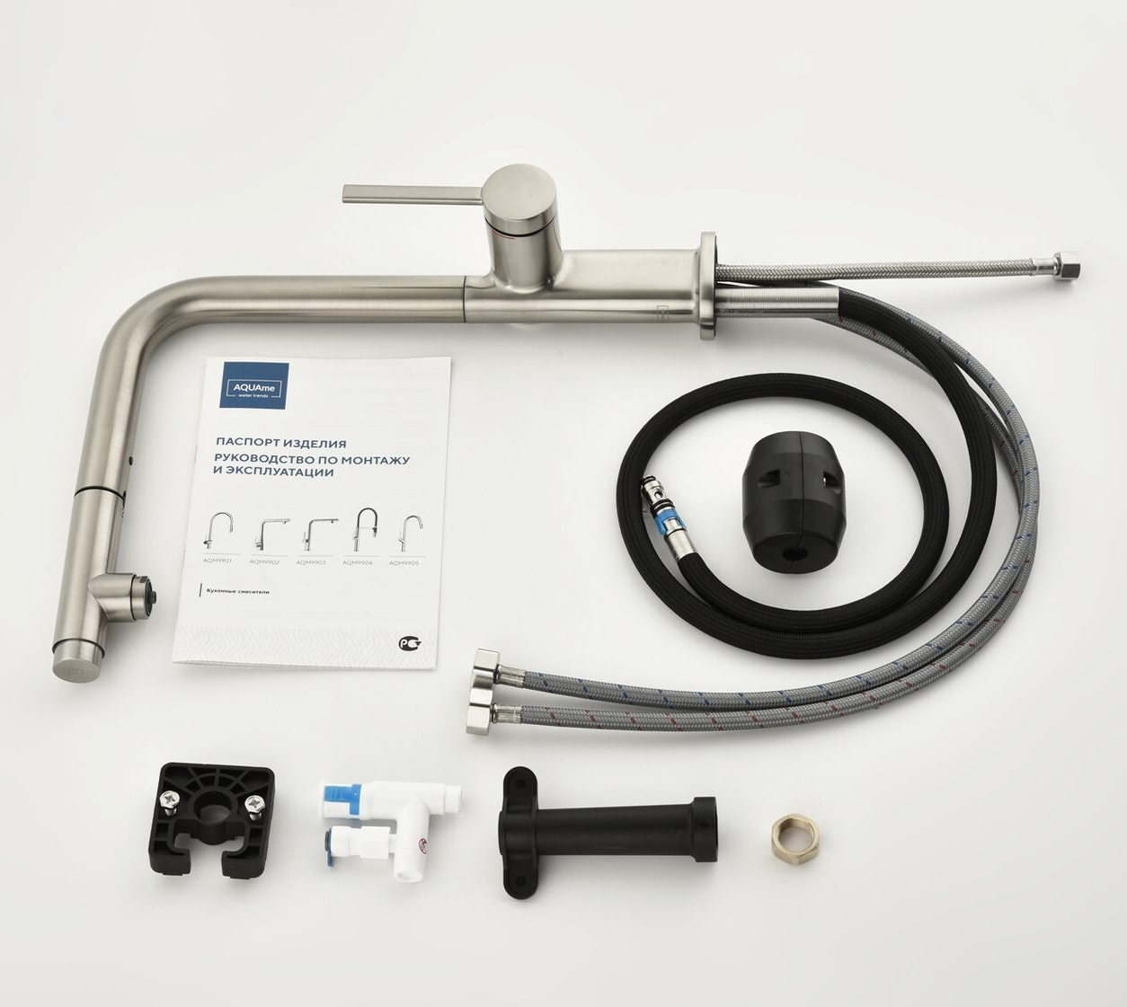 Смеситель для кухни под фильтр с выдвижным изливом AQUAme Cucina никель шлифованный AQM9903BN