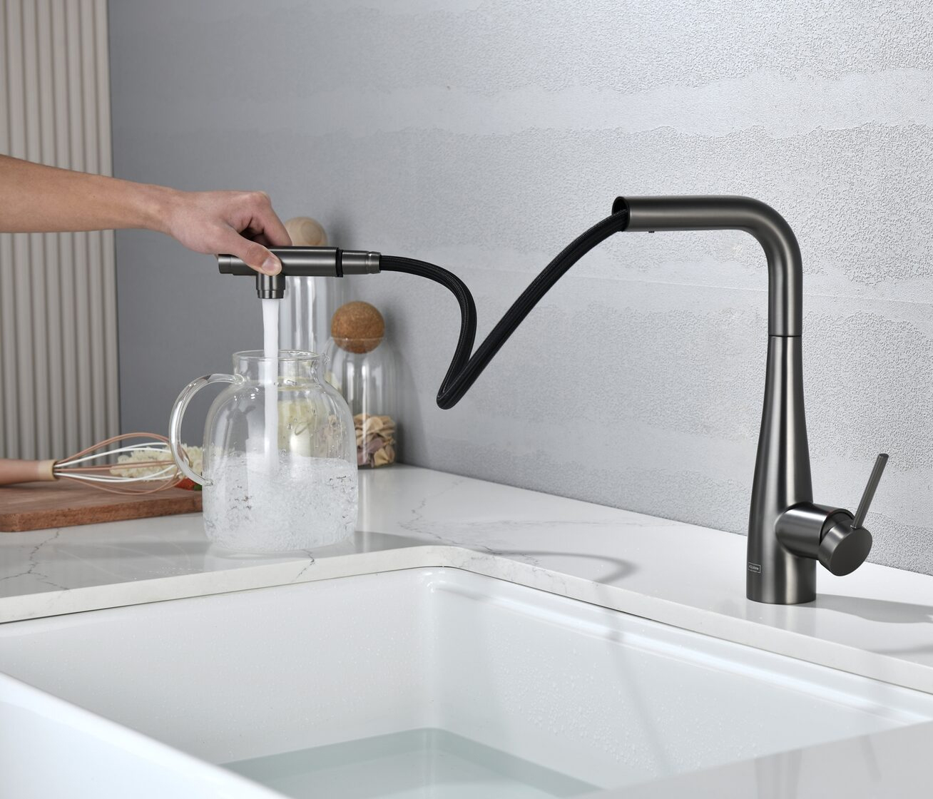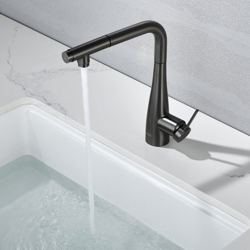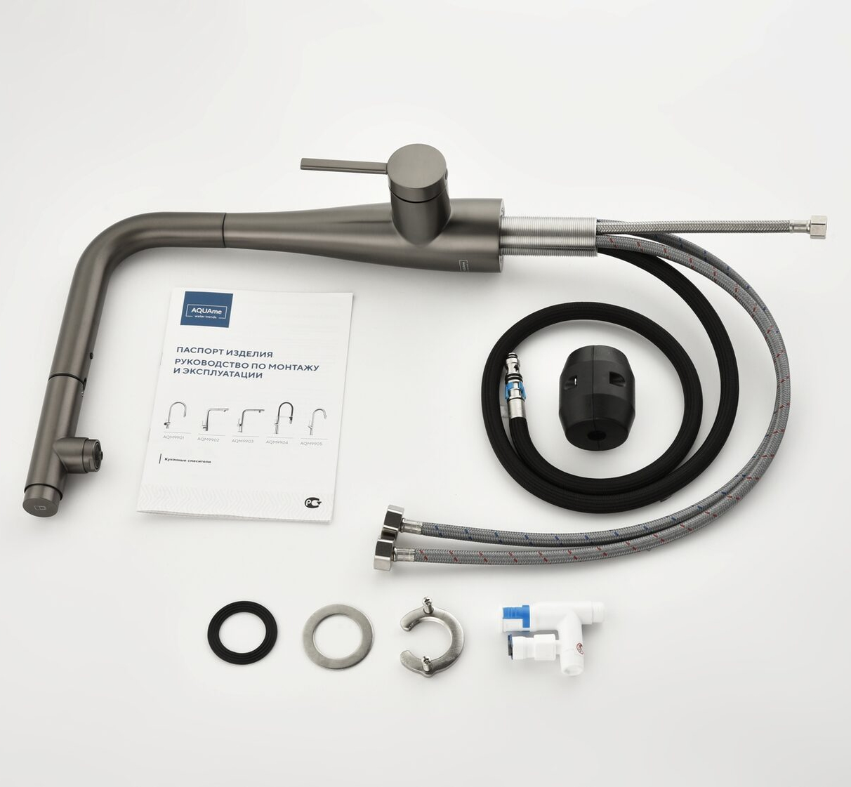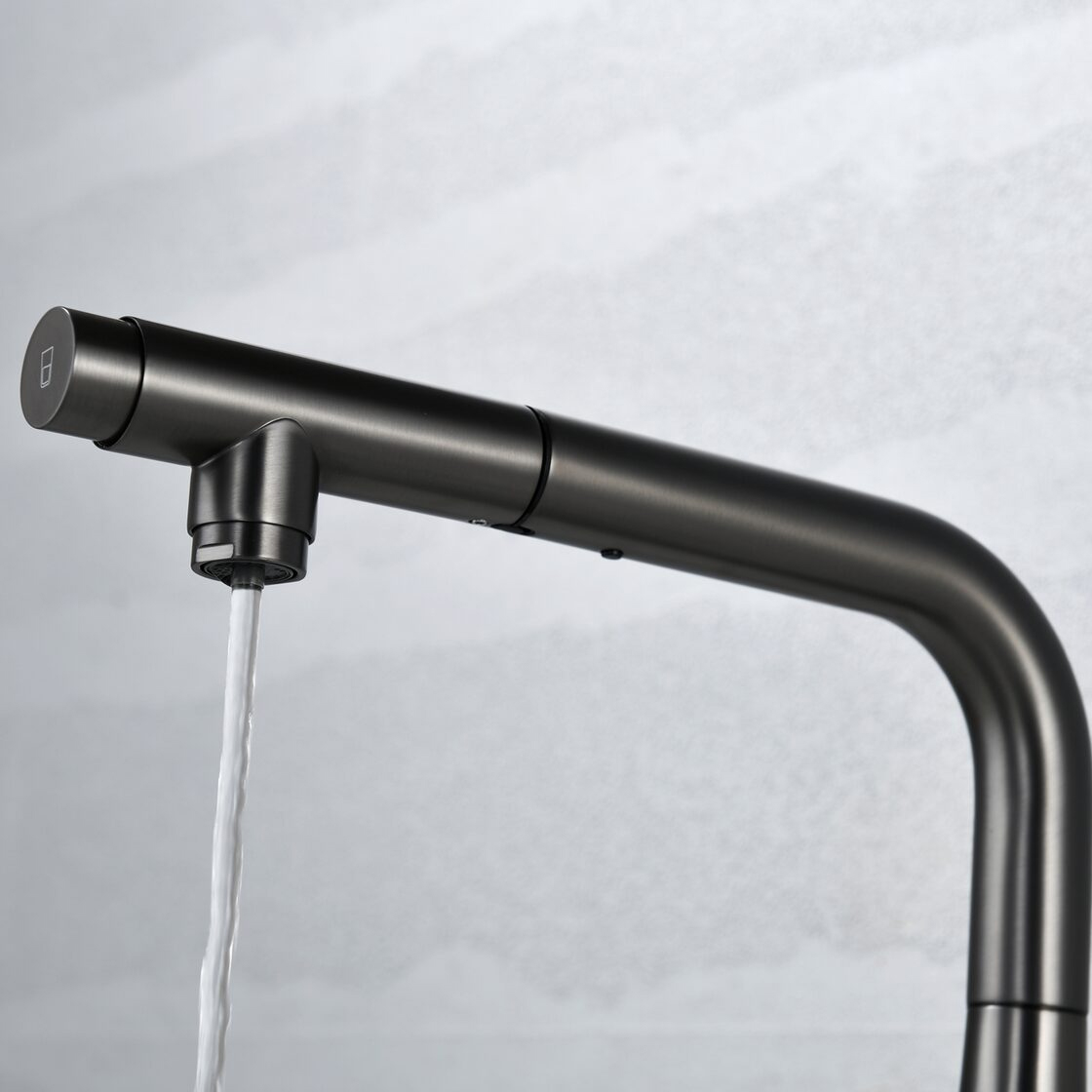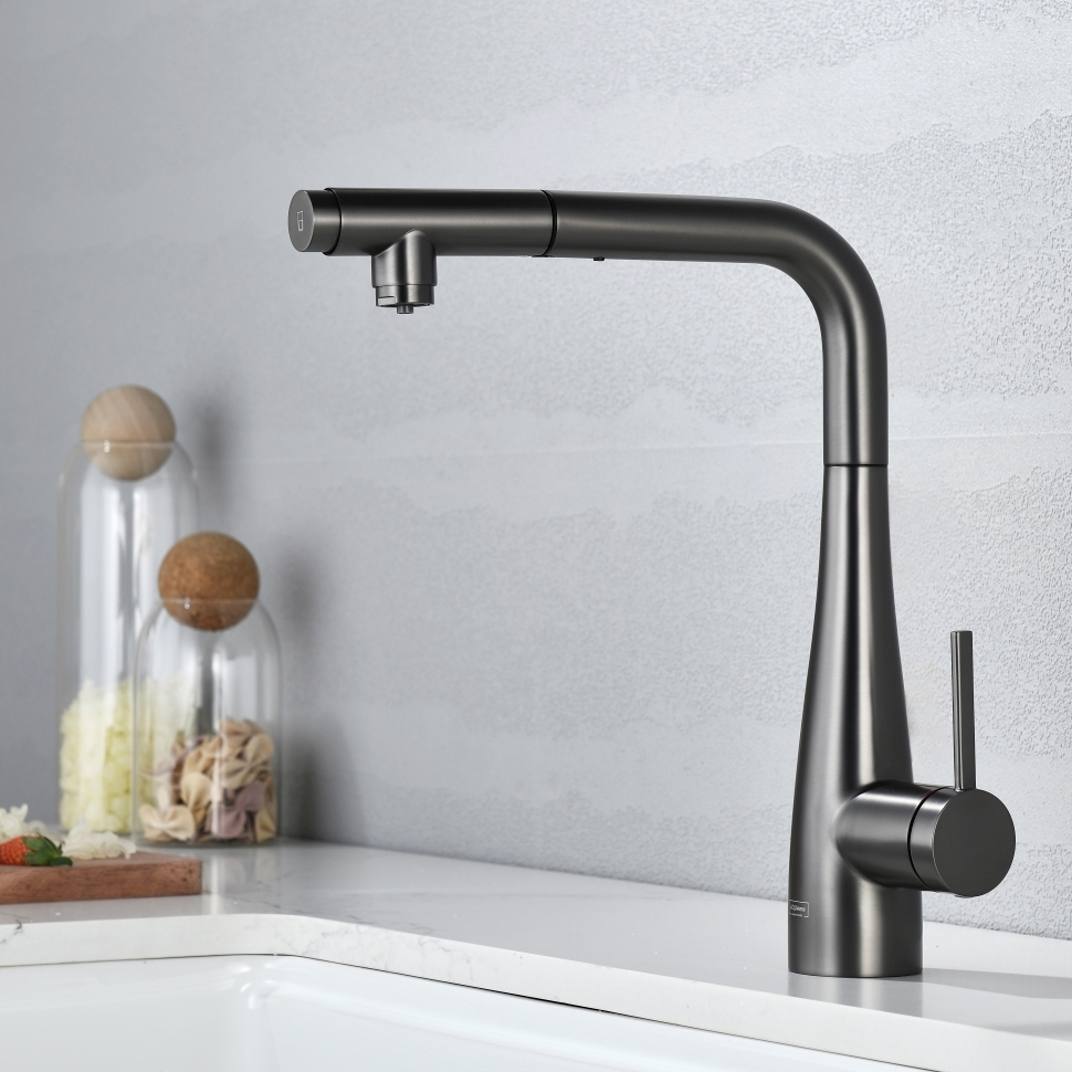Смеситель для кухни под фильтр с выдвижным изливом AQUAme Cucina темный металл AQM9902GM