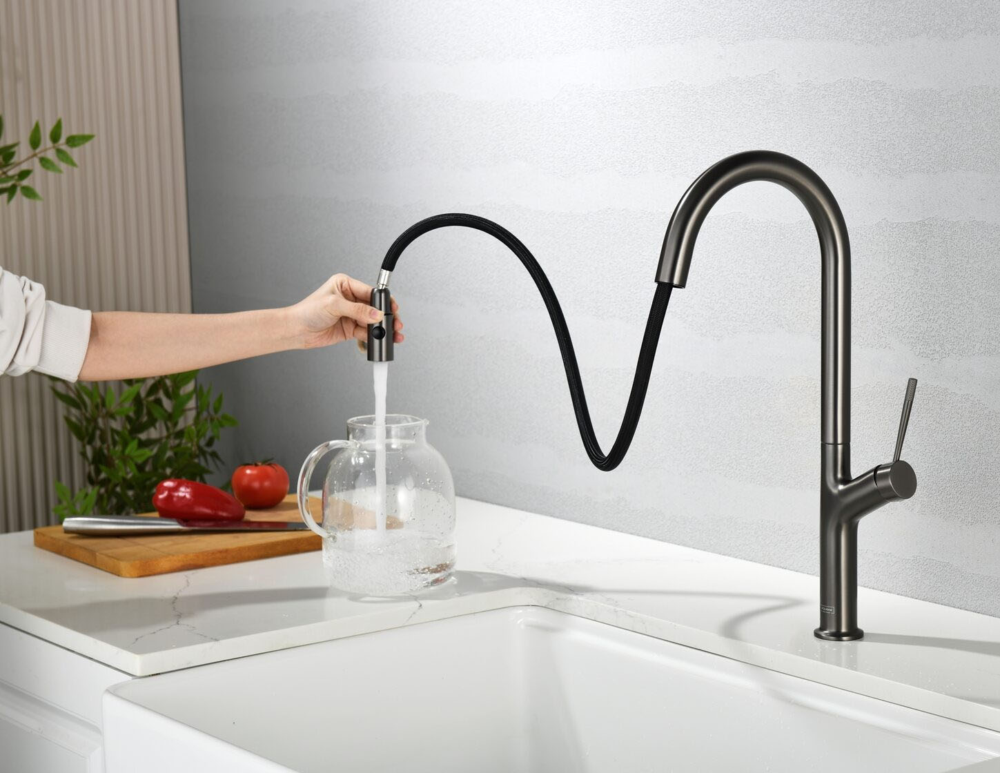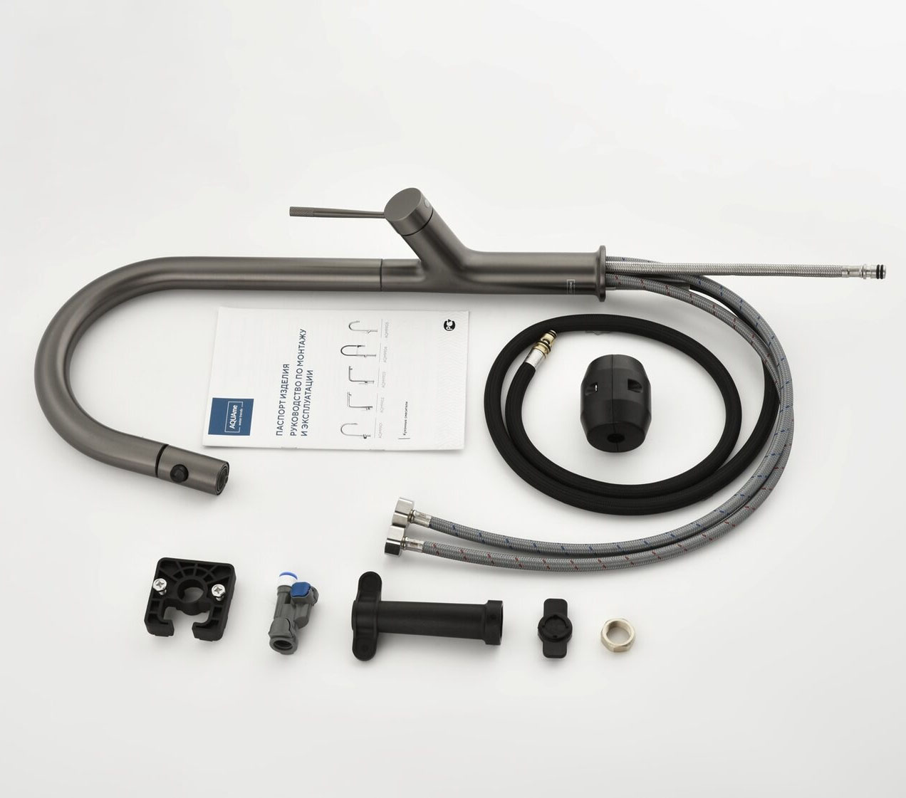 Смеситель для кухни под фильтр с выдвижным изливом AQUAme Cucina темный металл AQM9905GM