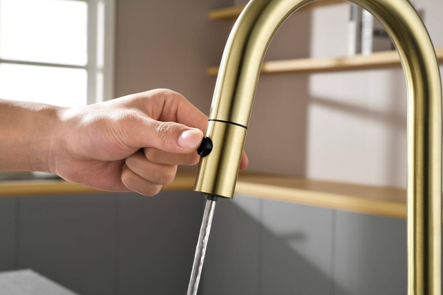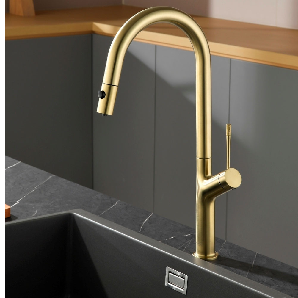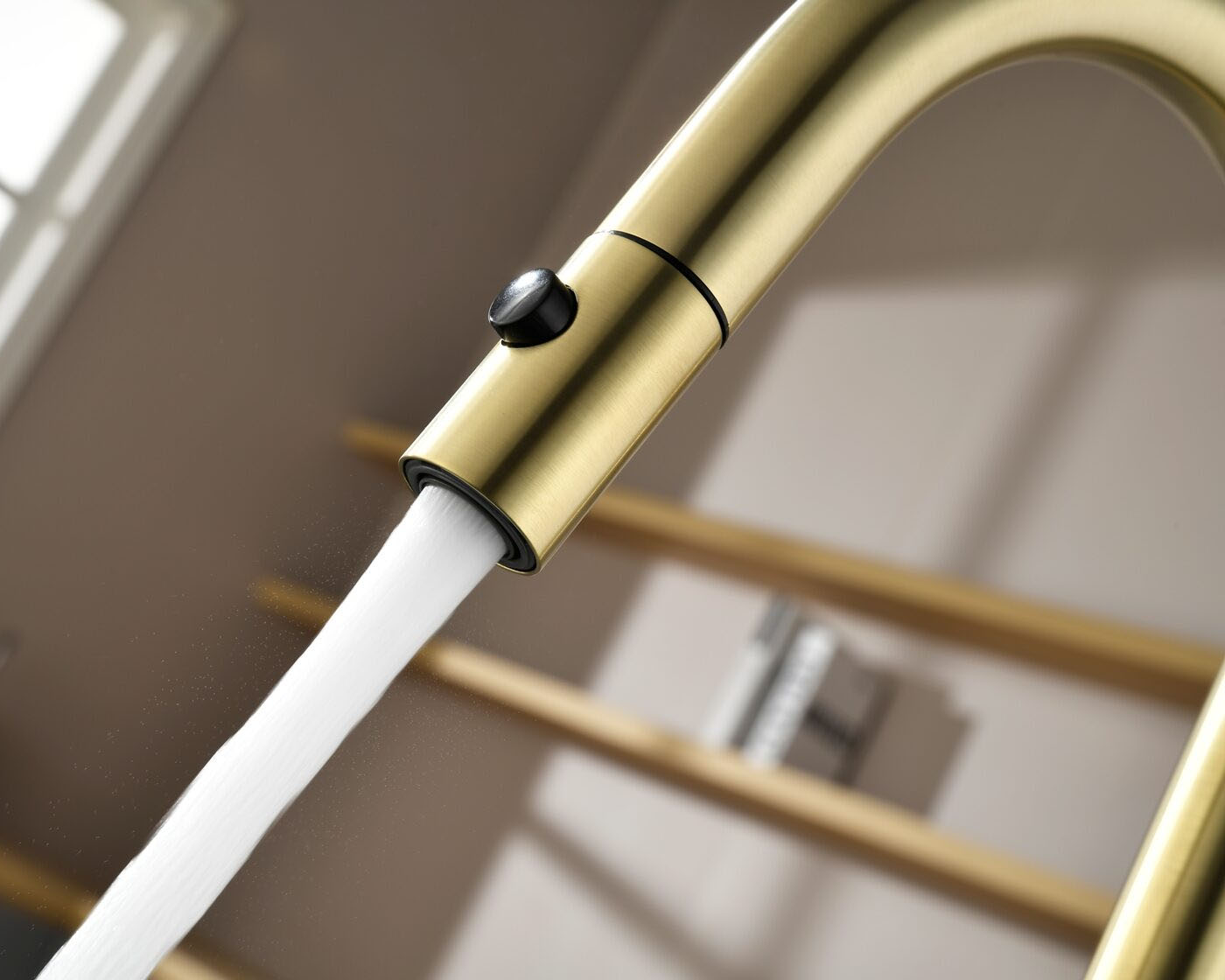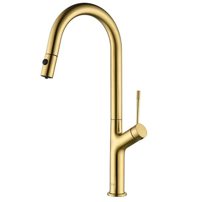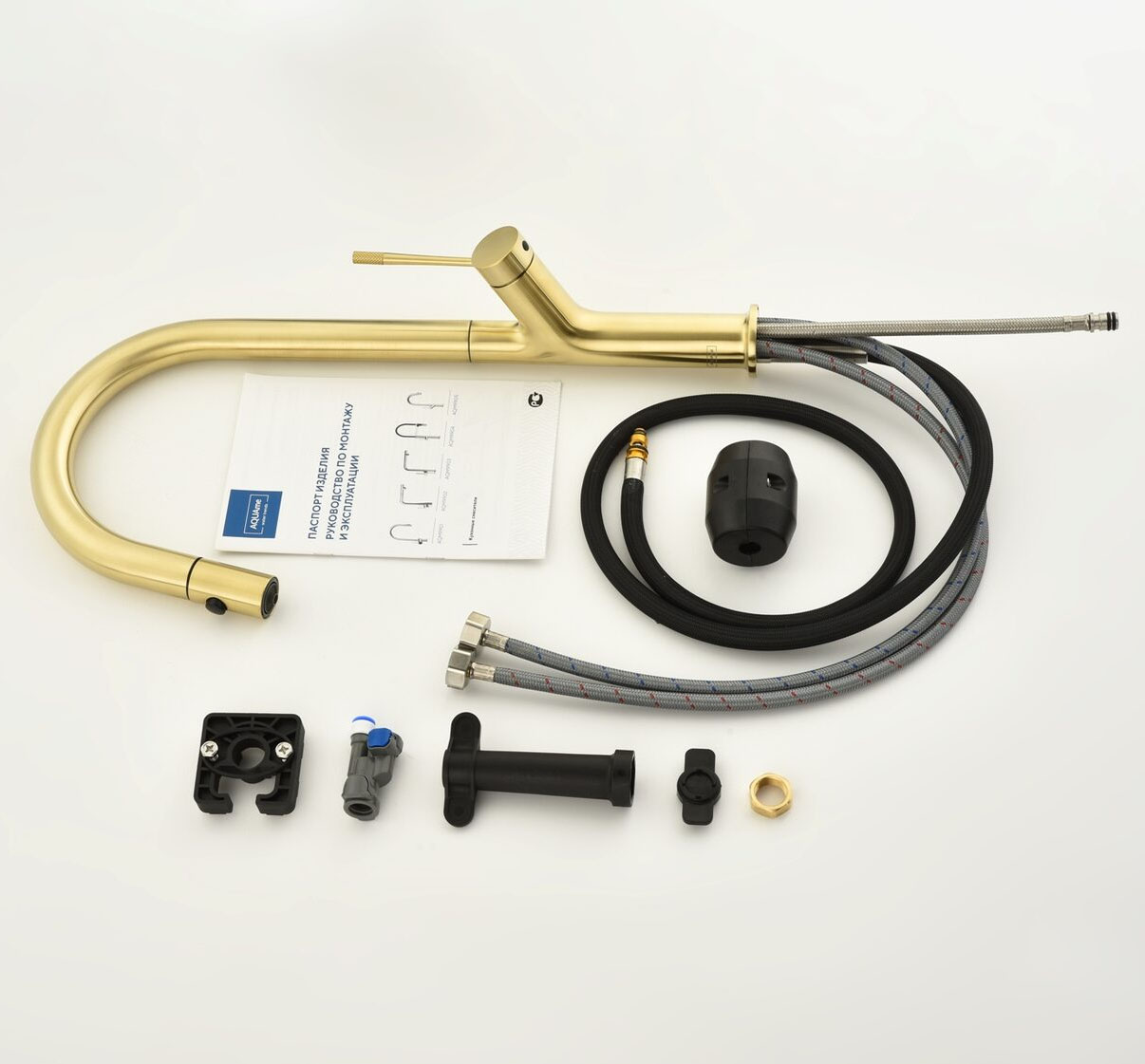 Смеситель для кухни под фильтр с выдвижным изливом AQUAme Cucina золото шлифованное AQM9905BG