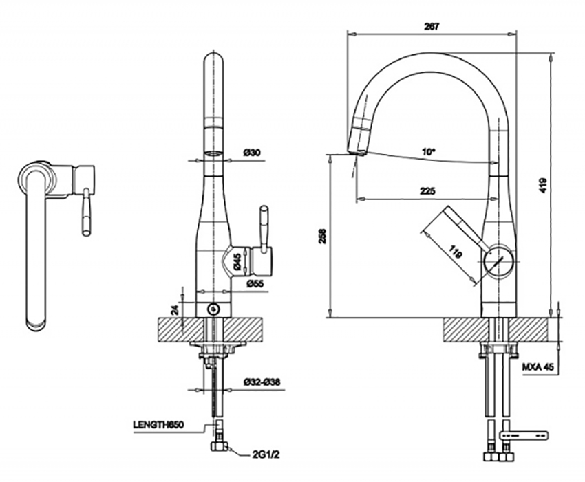 - Смеситель для кухни, с функцией озонирования воды (антибактериальный эффект)