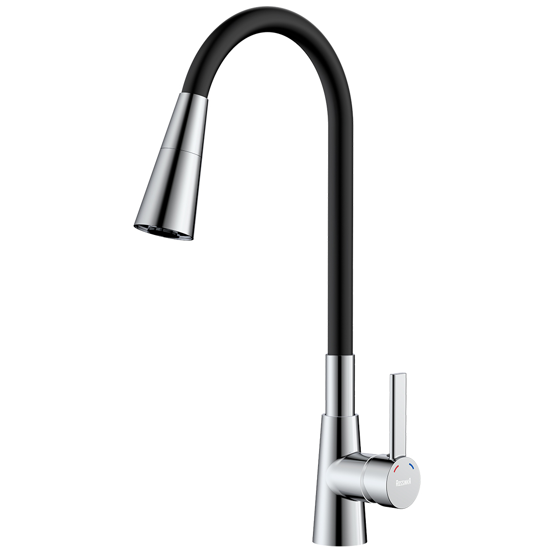Смеситель для кухни с гибким изливом Rossinka Silvermix черный/хром Z35-39-Black
