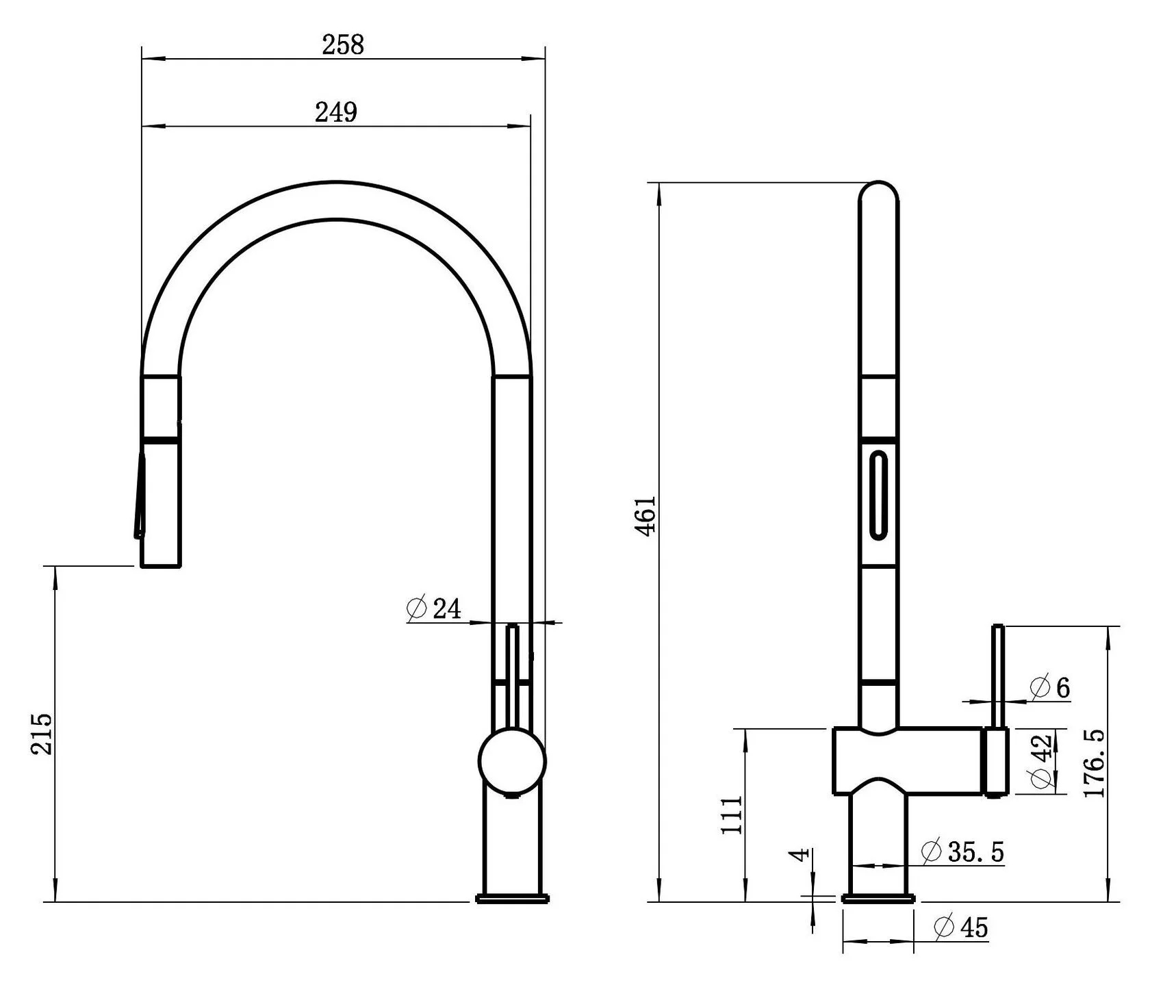 | Особенности | Выдвижной поворотный излив/ лейка 2 режима/ аэратор |