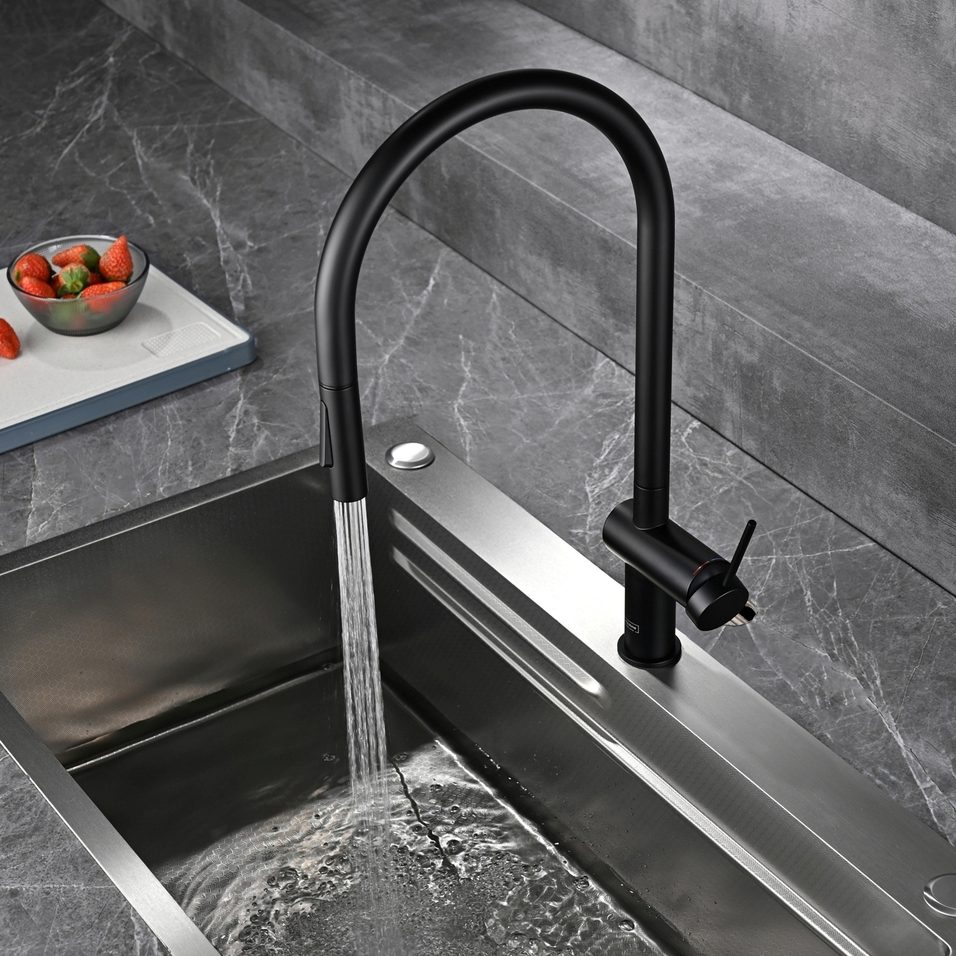 Смеситель для кухни с выдвижным изливом AQUAme Cucina черный матовый AQM9901MB