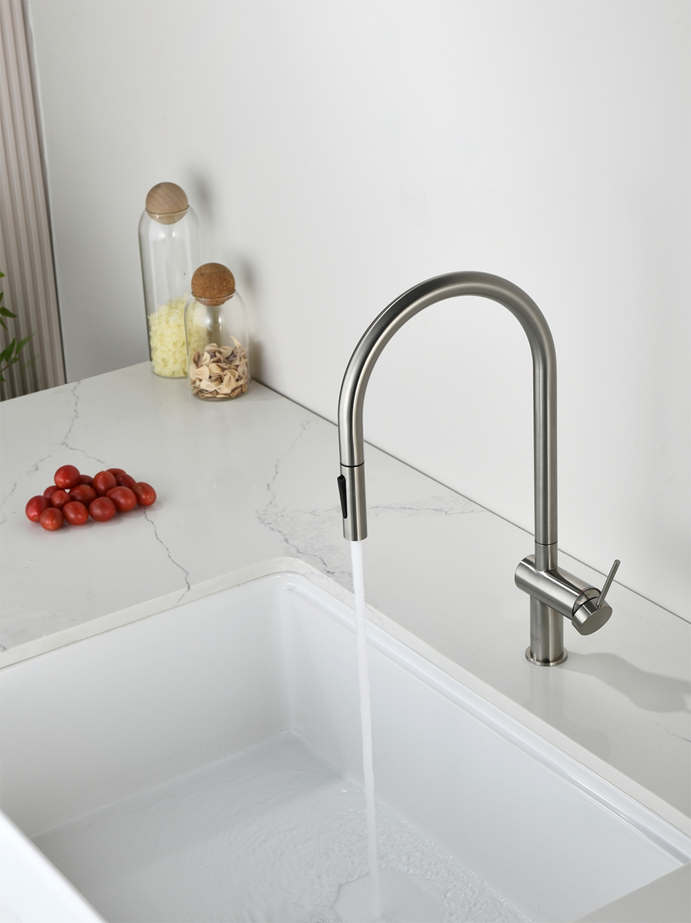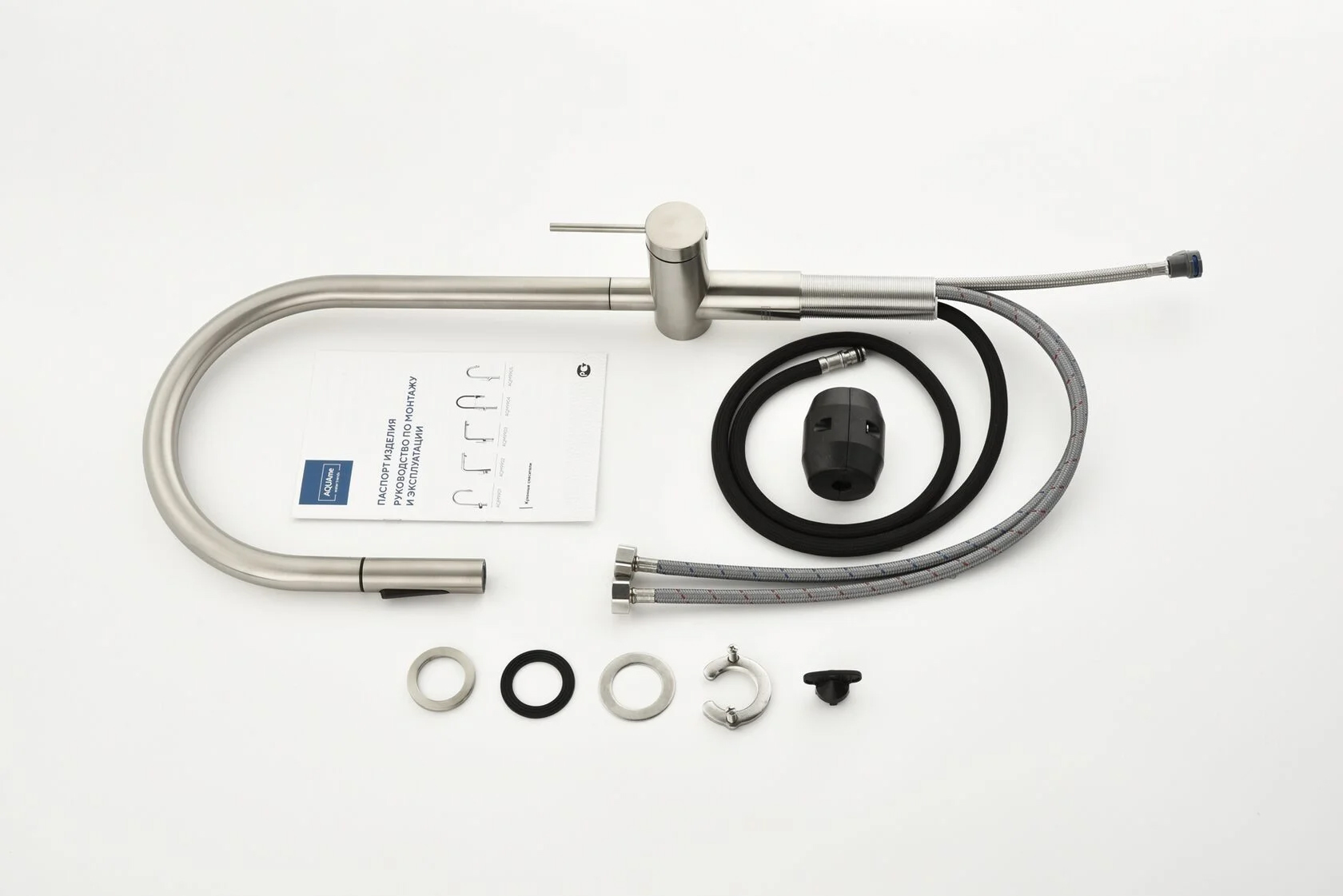 Смеситель для кухни с выдвижным изливом AQUAme Cucina никель шлифованный AQM9901BN